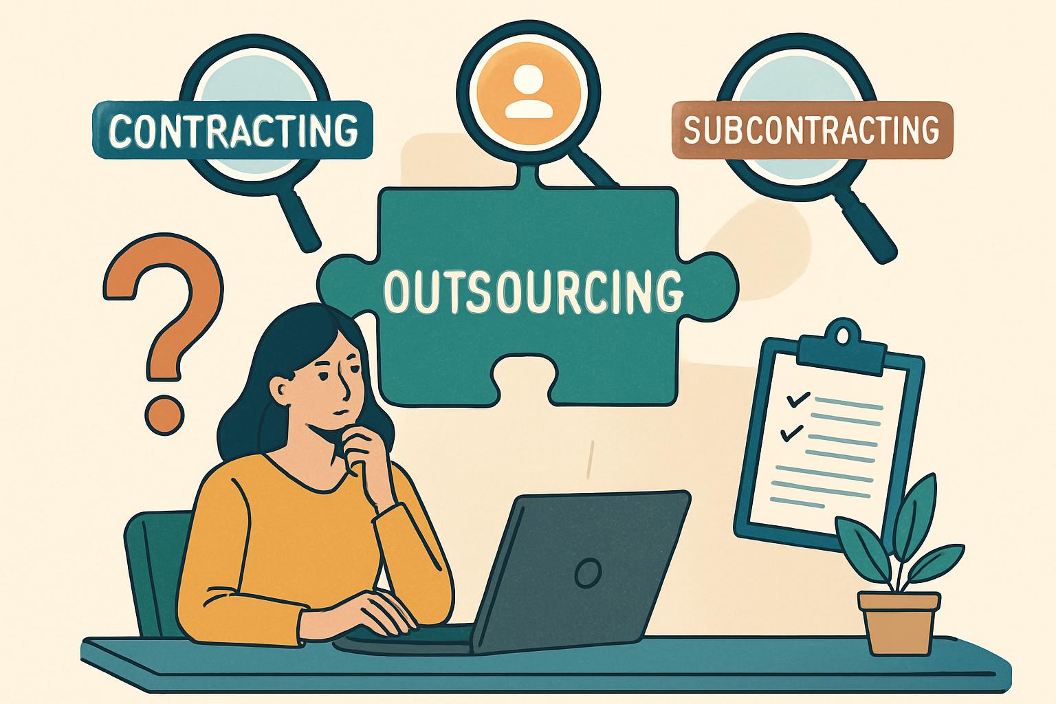 ここでは、それぞれの用語が持つ意味と「外注」との関係性について、図や表を交えながらわかりやすく解説します。