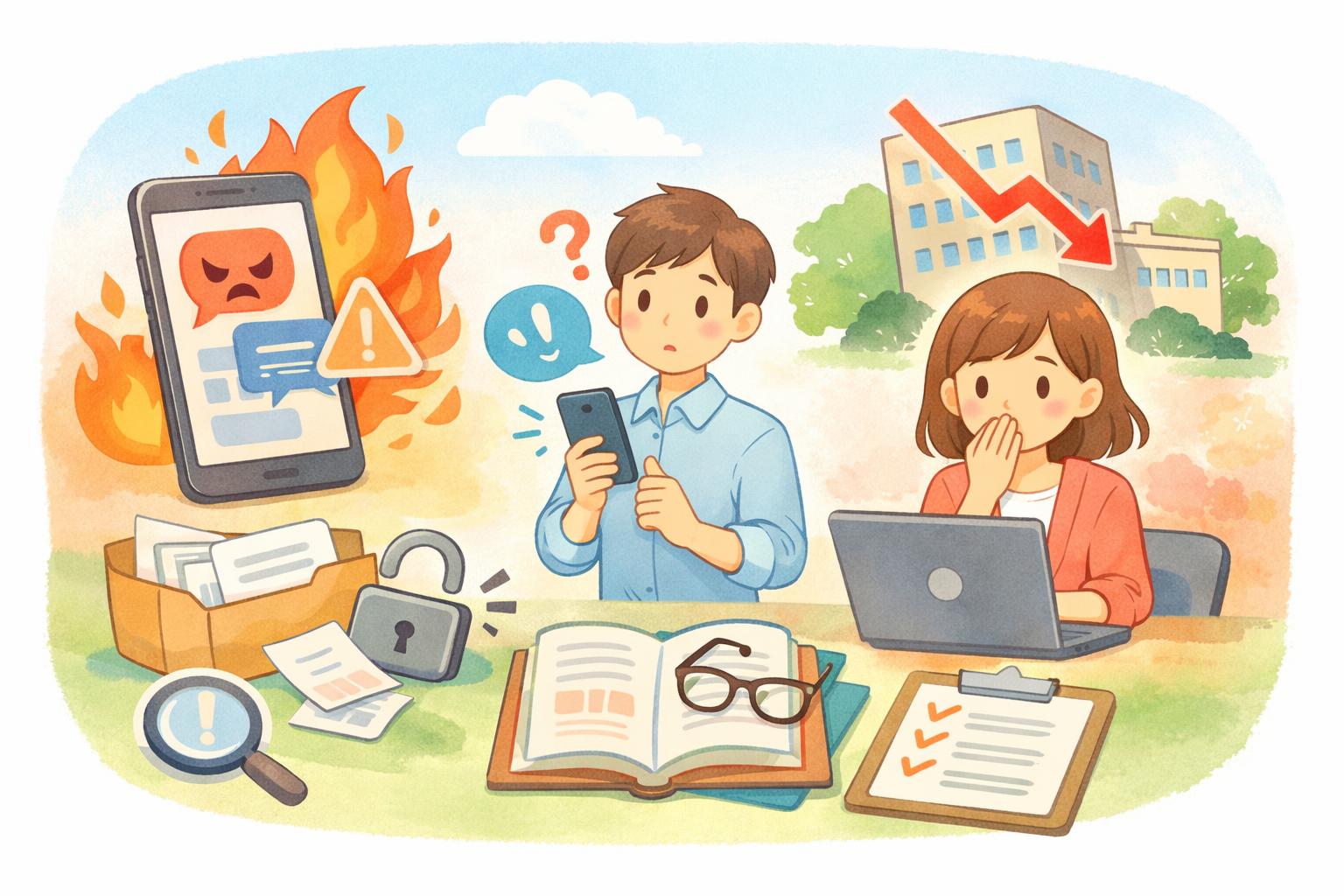 SNSは企業にとって強力なマーケティングツールである一方、使い方を誤ると一瞬にして企業のブランドイメージを損なう「炎上」のリスクをはらんでいます。不適切な投稿や発言が拡散されることで、顧客からの信頼失墜、株価の下落、最悪の場合は事業継続が困難になるケースも少なくありません。